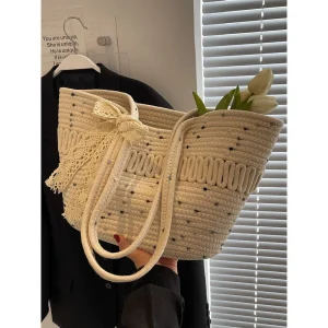 – Túi cói cao cấp được làm từ chất liệu cói thời trang dày dặn, không nhuộm màu, đẹp với đường may vô cùng tỉ mỉ và chắc chắn — Phần túi tote đựng được thiết kế rộng rãi giúp bạn có thể đựng nhiều đồ vật như sách, vở, mỹ phẩm, đồ dùng cá nhân…